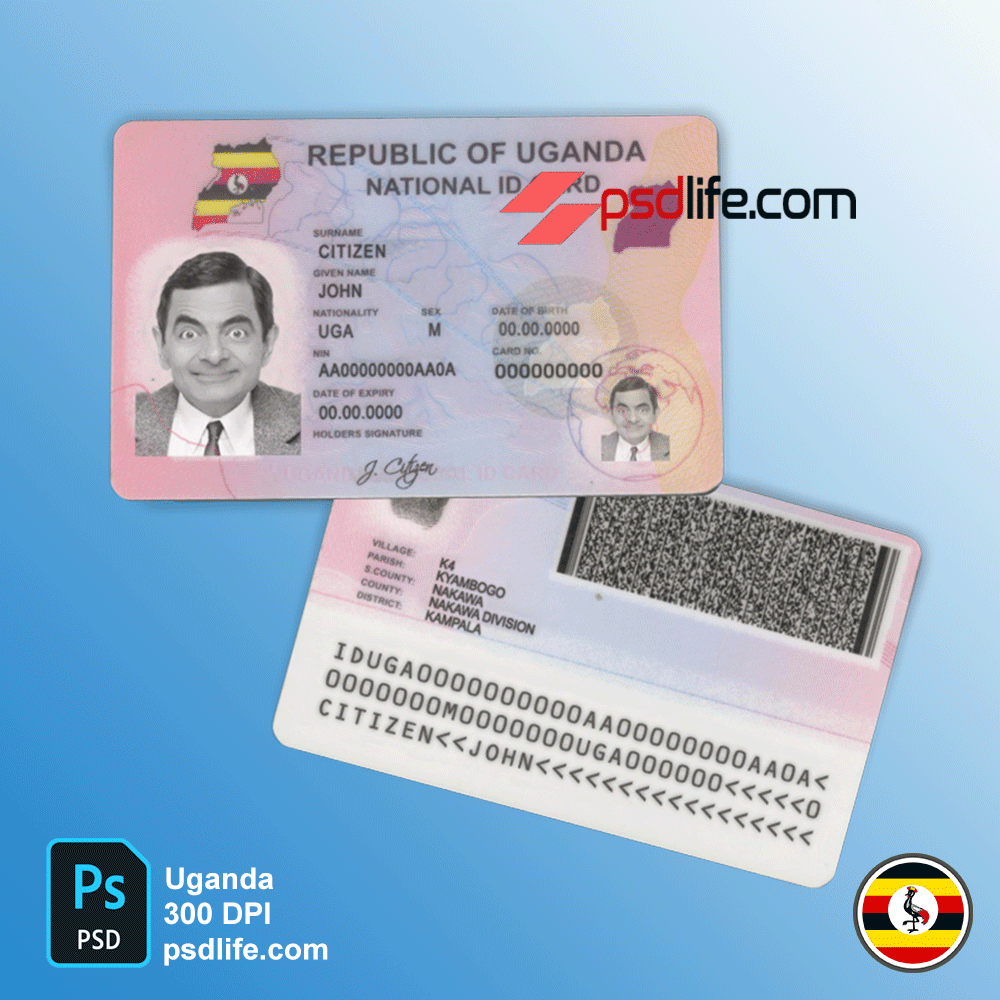 Every Ugandan citizen has the right to have National Identity card and registration is not delegate-able. Mass registration started across the country in 2015 and every citizen is required to register in their respective place of birth or residence to enable the process of information gathering. Download free Free download uganda national id card psd template | all details and photos are editable with photoshop software
