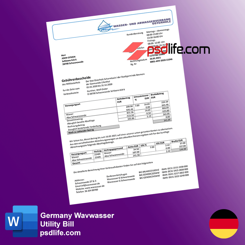 Germany fake utility bill for proof of address format is a completely editable and free download, which is fully detailed in this article, then we have given you a video on how to download PSD files, be sure to watch.