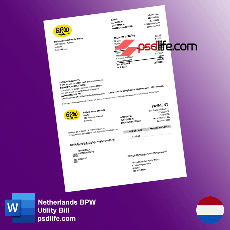 Introduce Netherlands BPW and its utility bill psd template