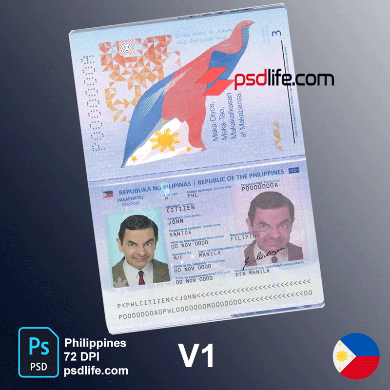 passport template psd free download Effective January 1, 2018, the regular philippine passport template now has a validity of 10 years for Filipinos who are 18 years old and above, and 5 years for those below eighteen years old. in the Philippines passport psd template and safety format & Indicators of security | passport psd template free download | editable passport fake psd template.