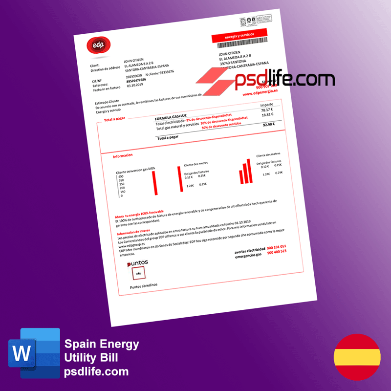 Well, the answer is that by paying a very small fee, you can receive a Spain fake utility bill for proof of address file with your own specifications, i.e. with your photo and date of birth… at this time, you don’t need to do any more work and you don’t need to take the photo with difficulty. Edit yourself. Leave your work in peace and you will be comfortable. This product means  Customize and Edit free fake utility bill for proof of address with your information (free fake utility bill generator ) must be purchased separately and after purchase, you can contact the support and raise your problems.