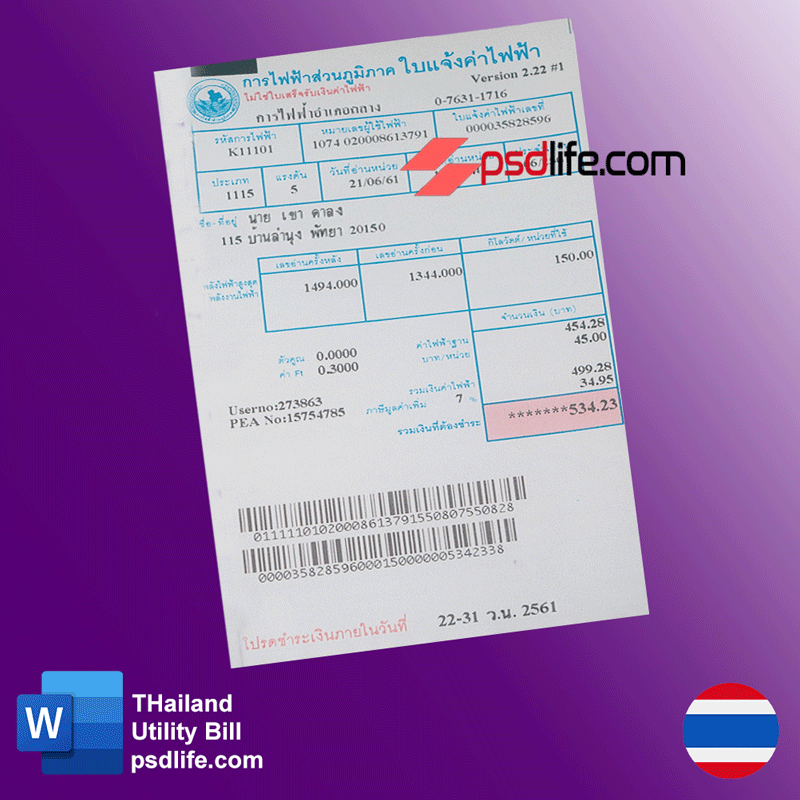 3 reviews for Thailand fake electric utility Bill psd template, Fully editable with all fonts