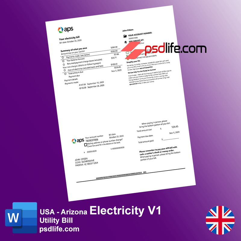 If you are looking for a high-quality and reliable USA free fake utility bill for proof of address, you have come to the right place. Introducing the USA Arizona utility bill psd template is one of the best psd templates you can find on the internet. This psd template is perfect for those who want to create a professional utility bill. This template is very easy to use and comes with a detailed instruction manual. Customizing the template is also very easy. You can change the colors, fonts, and layouts to suit your needs.