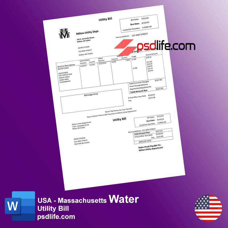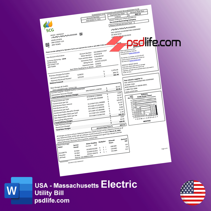If you are looking for a high-quality and reliable USA Massachusetts utility bill psd template then you have come to the right place. Introducing USA Massachusetts free fake utility bill for proof of address is one of the best psd templates that you can find on the internet. This psd template is perfect for those who want to create a professional-looking utility bill. The template is very easy to use and it comes with a detailed instruction guide. The template is also very easy to customize. You can change the colors, fonts, and layouts to suit your needs.