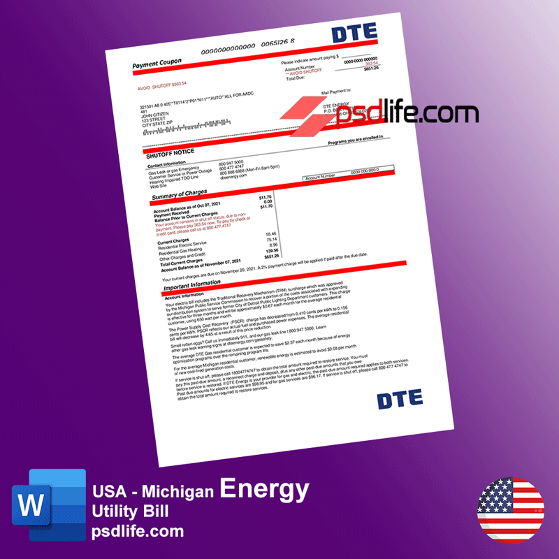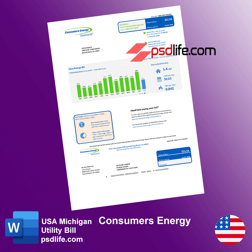 Are you looking for a USA Michigan free fake utility bill for proof of address? Creating a USA Michigan bill psd template is easy with Adobe Photoshop. You can use any USA Michigan flag image as your background and then add your own text and images to create a unique bill. Here’s how: