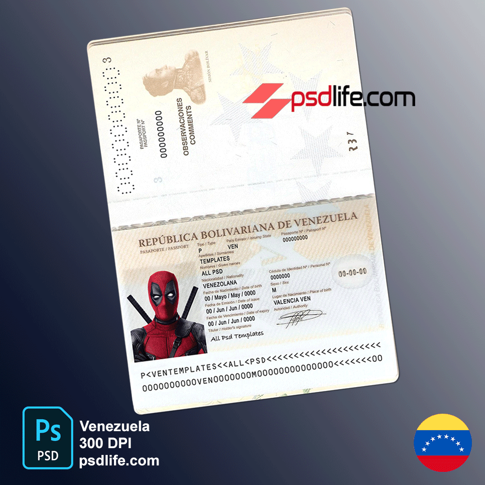 The open file and fake template of the Passport of Venezuela is of 4k quality, this file is similar to the original sample and is presented as an open and fake file in the fake download store.The fake Venezuela Passport file can be downloaded and purchased instantly through this store.
