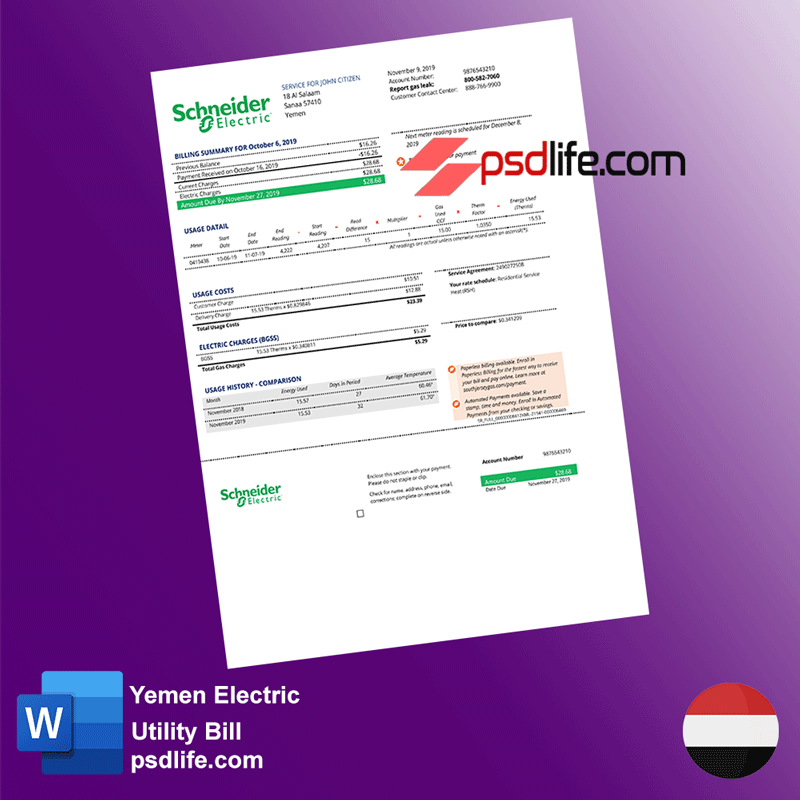 Well, the answer is that by paying a very small fee, you can receive the Yemen free fake utility bill for proof of address file with your own specifications, i.e. with your photo and date of birth… at this time, you don’t need to do any more work and you don’t need to take the photo with difficulty. Edit yourself. Leave your work in peace and you will be comfortable. This product means  Customize and Edit free fake utility bill for proof of address with your information (fake utility bill generator ) must be purchased separately and after purchase, you can contact the support and raise your problems.